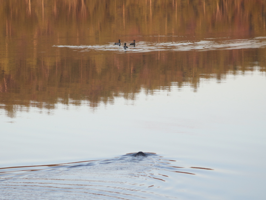 Eventually I went on my way, continuing across the water, paddling up Blake Brook, a much easier task in early spring before the lily pads clog the way. As I neared the dam I thought someone was mowing with a tractor on the other side of the beaver pond as I heard the slow chug of diesel motor. I honestly looked across the lake trying to figure out where the machinery was, without success, until I realized it was within the dam itself. Water glugging through the dam was making the tractor sound! You can hear it chugging among the spring peepers and the scolding chick-a-dees that weren't happy with my presence here: