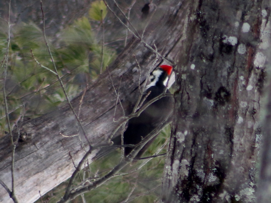 | A female pileated woodpecker, identifed by the black versus red mustache. |