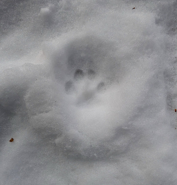 It was on a different snowshoe trip that I came across more bobcat tracks.