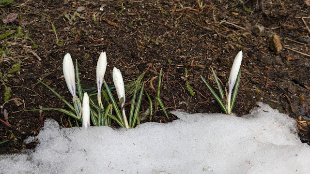 Next onto the airborne signs of spring. The early migrants are starting to arrive in the Lakes Region; on one morning walk I heard or saw no less than 19 different bird species including my first warbler, the yellow-rumped, a blue-headed vireo, and a hermit thrush. There is no sound in the forest that's more comforting than the gentle, soothing flute of a hermit thrush. The phoebes on the other hand, are anything but soothing. Although a joy to hear, their call is loud, raspy, and somewhat harsh, and right now they are really making their presence known. Mr. Phoebe will sit outside on those red maples by the lake singing his heart out.
